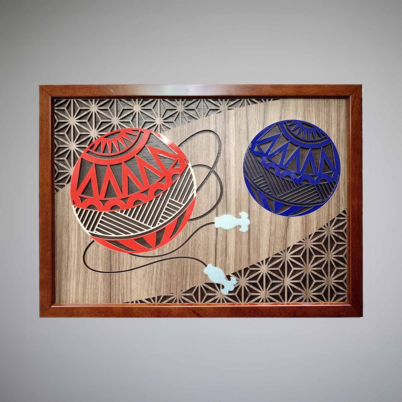 日本のエッセンスを感じさせる木製インテリアグッズのコレクション「ハピネス」シリーズ。単なる装飾にとどまらず、それぞれの作品には心からの願いが込められています。メインモチーフとそれぞれの組子模様は、魔除け、末永い家族の繁栄、長寿など、さまざまな願いを象徴しています。ご自身の空間を飾るのにも、大切な方への贈り物としても、特別な意味を持つ作品です。背板は白と黒のリバーシブルデザインで、お部屋の雰囲気に合わせてお選びいただけます。